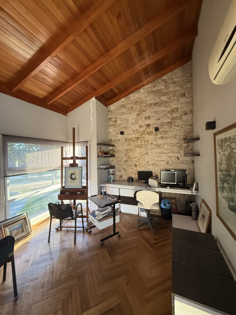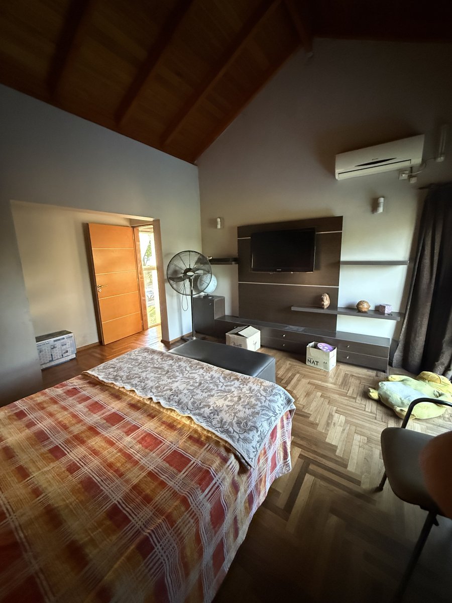 Venta de casa de categoría de 3 dormitorios en B° cerrado - Campos del virrey, rodeado de naturaleza. Lote de sup. 5000 m2 y sup cub 312 m2. La casa cuenta con 3 dormitorios y 3 baños distribuidos de la siguiente manera: Planta baja: 2 dormitorios 1 baño con jacuzzi 1 baño social Living Comedor Cocina separada Comedor diario Lavadero separado Cochera cubierta para 2 autos Galeria con asador Pileta Planta alta: 1 dormitorio con vestidor y baño en suite 1 escritorio / atelier con acceso a terraza. La vivienda está realizada con materiales de primera calidad, pisos de parquet y aberturas de aluminio bien conservados. Cada ambiente cuenta con radiadores. Rodeada de naturaleza ya que se encuentra construida en media hectárea de terreno, todo parquizado, con árboles autóctonos, 5 olivos, durazno y almendro. Recibe Menor. Escribinos y vamos a conocerla! Maca y Euge Intermediarias del Bien Estar MP CPI 8141